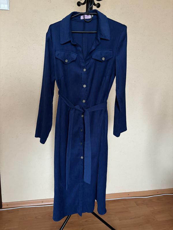 Вельветовое платье на пуговицах и имеет пасок