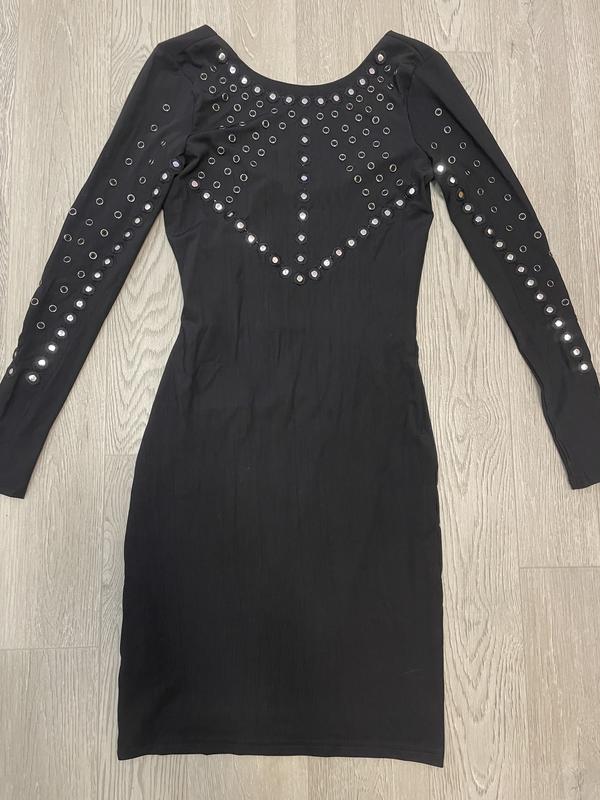 Нарядная, украшенная заклепками. Ткань очень плотная, сзади вырез больше. Есть небольшой дефект, на последнем фото видно, можно аккуратно зашить. В целом, состояние идеально