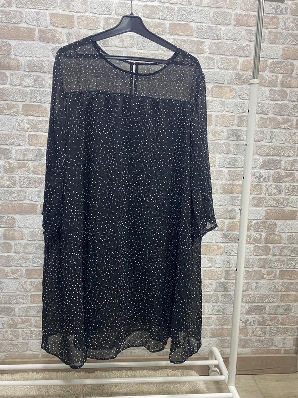 Жіноче шифонове плаття на підкладці , в гарному стані та якості . Довжина- 98см, ог-62(124)см, плечі-44см, рукав-48см.