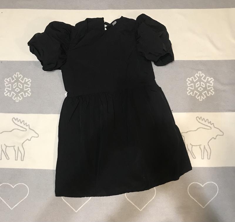 платье черное 100% полиамид 38/10/165/88 А замеры на фото Рукав крупный фонарік, засчёт ткани Хорошо держит форму Платье модное и стильное Идеальное состояние