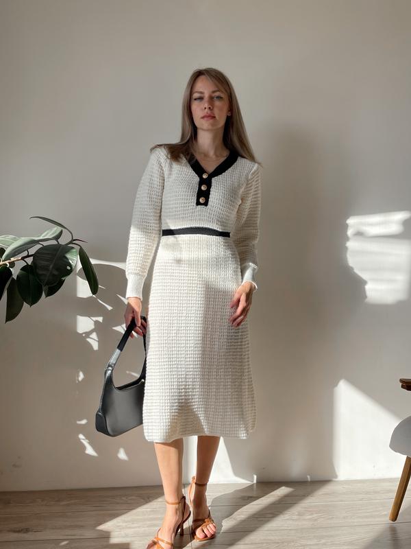 Новое вязаное платье длины миди Пуговицы декоративные, не функционируют Хороша вʼязка Не Zara Размер one size Длина 113 см ПОГ 45 см Плечи 36,5 см Длина рукава 59 см