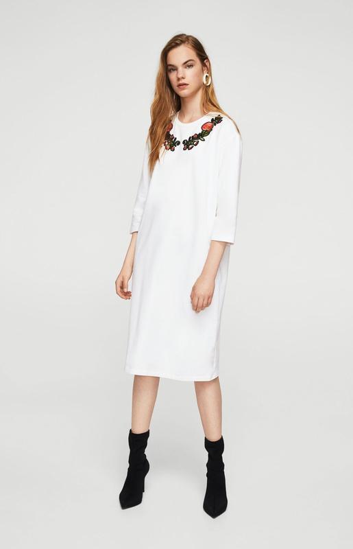 Трикотажное платье миди Mango с вышитой аппликацией. Размер на наборе М. Мягкая, приятная на ощупь ткань. ПОГ 56 см ПОТ 55 см ПОС 54 см Длина 103 см Рукав 39 см Плечевой шов 16 см Ширина в плечах 50 см Смотрите, пожалуйста, все мое объявления — огромный выбор платьев и блуз H&M, Zara, Mango. https://shafa.ua/member/taniahor Подписывайтесь – частое пополнение ассортимента!)