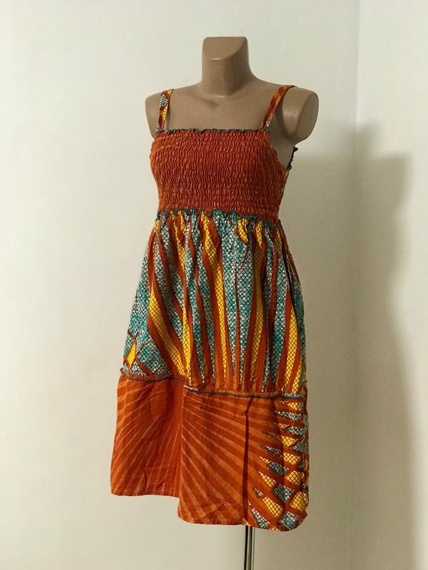 Яркий сочный летний натуральный сарафан Длина -97 Пог- 33 { резинка} Верх платье сделан в виде бандажной резинки, для поддержки груди. Талия и бёдра свободны. Сарафан без внешних дефектов и следов носки.