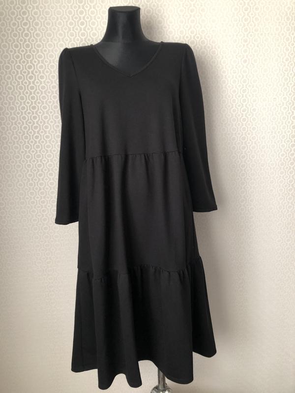 Ярусное трикотажное платье насыщенного черного цвета. Размер указан S (реально подойдёт до L). Без карманов. Без подкладки. Замеры изделия в не растянутом виде, см: плечи 36, подмышки (примерно равно ПОГ) 47, ПОТ 47, ПОБ (Замер делаю на расстоянии 65 см от плечевого шва, если вещь короче, то по краю изделия) 63, длина 104, длина рукава 52. Объёмы манекена, см : плечи 39, ОГ 87, ОТ 63 ОБ 90 Отправляю Новой почтой либо наложенным платежом (при условии оплаты доставки в оба конца), либо по предоплате на карту Приват, Укрпочтой по предоплате, Meest по предоплате Продаю много фирменных вещей Airfield, Strenesse, Gerry Weber, Steilmann, Brax, Bonita, Basler, Frank Walder, Apanage, Olsen, Ulla Popken, Gardeur, Monari, Rabe, Guess, Hauber, Marks&Spencer, Concept K. Много новых вещей (с этикеткой) - можно на подарок. Смотрите другие мои объявления. Спасибо, что заглянули :-)
