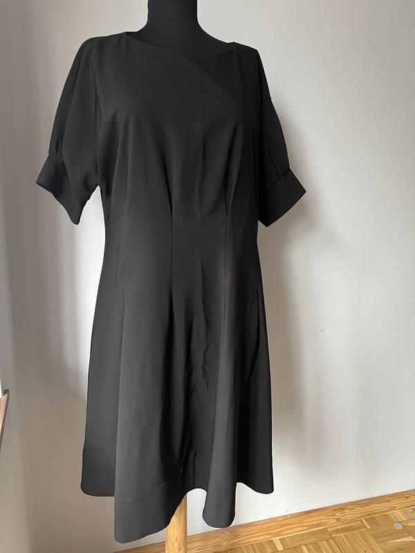 Гарна сукня - футляр бренду Young Couture чорного кольору з коротким рукавом на манжеті та підкладці. На спині блискавка 55 см. Розмір L-XL. Заміри: від пройми до пройми 51 см (рукав цільнокрійний ) пот-47 см, пос-61 см, довжина по спині-95 см. Стан ідеальний.