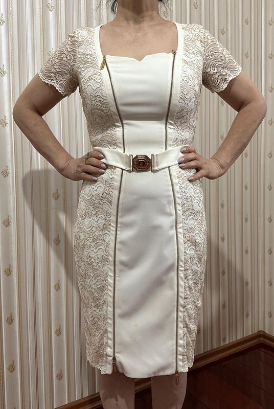 Платье на двух молниях спереди, дополнительно идет пояс Размер 48 ОГ - 92-95 см ОТ - 80-83 см ОБ - 100 см Длина от плеча - 99 см Сукня одягалась 2 рази.