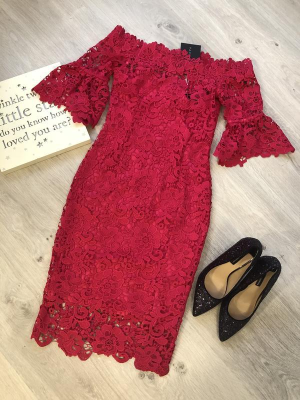 Шикарное кружевное платье футляр, кружевное платье с открытыми плечами миди