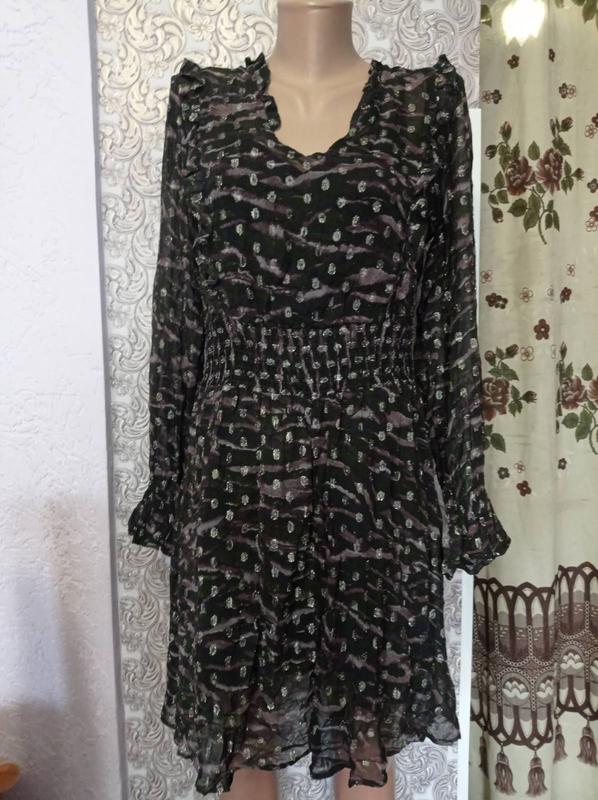 Красивое платье в цветочный принт, внутри с майкой. Размер указан 10. Состояние новое. Состав :96%вискоза,4%люрекс. Замеры:ПОГ-48см, ПОТ-35см,ПОБ-58см, плечи -30см, рукав -63см, длина -92см. Фото на теле нет. Пересылка.