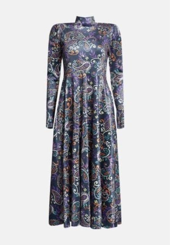 Брендовое платье миди: Paisley Print Velvet Funnel Neck. Размер - L Бренд: Warehouse 64% полиэстер, 30% переработанный полиэстер, 6% эластан. Длина от СНП: 125см