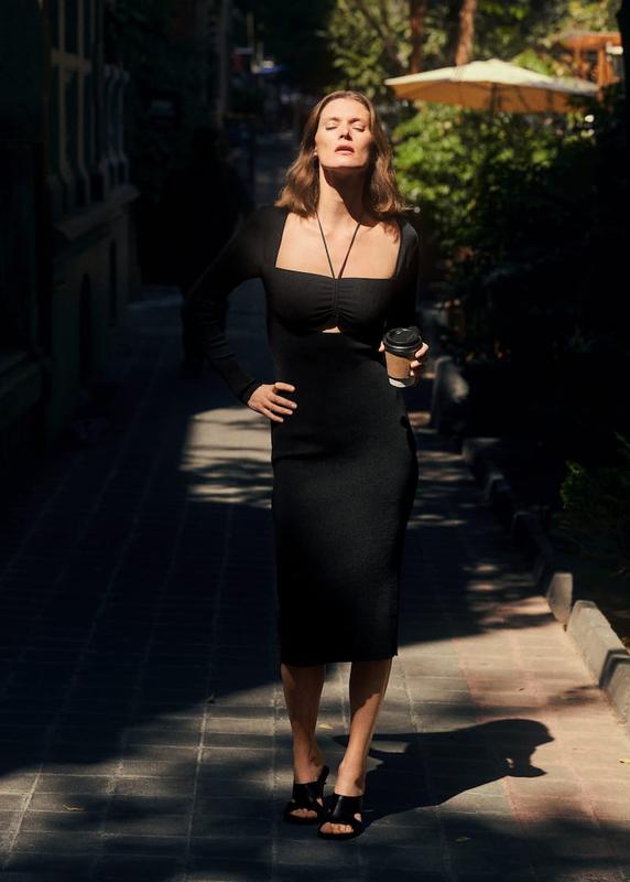 Платье платье в рубчик от mango. Платье из плотного трикотажа по типу резинка. Длина миди, второй рукав. Размер по набору хс, но подойдет на с и даже м. На фото в живую одето на рост 180, параметры 95/70/95. Длина платья 108см, длина рукава 60см Отправка накладным платежем новой почты по предоплате на счет ФОП Смотрите другие объявления, много новых фирменных вещей zara mango