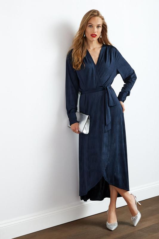 Платье миди на запах с поясом. Запах закрывается на скрытые кнопки и не регулируется. Но с помощью пояса можно затянуть на меньше. Ткань тонкая, скользящая на ощупь, имеет как мраморный узор. Подойдет на рост +/- 175. Состояние новое, но без бумажной бирки. Замеры: полуобхват груди - 53 см полу охват талии - 49 см полуобхват бедер - 61 см длина - 125 см длина от плеча до линии талии - 39 см рукав - 61 см Состав: 93% полиэстер, 7% эластан