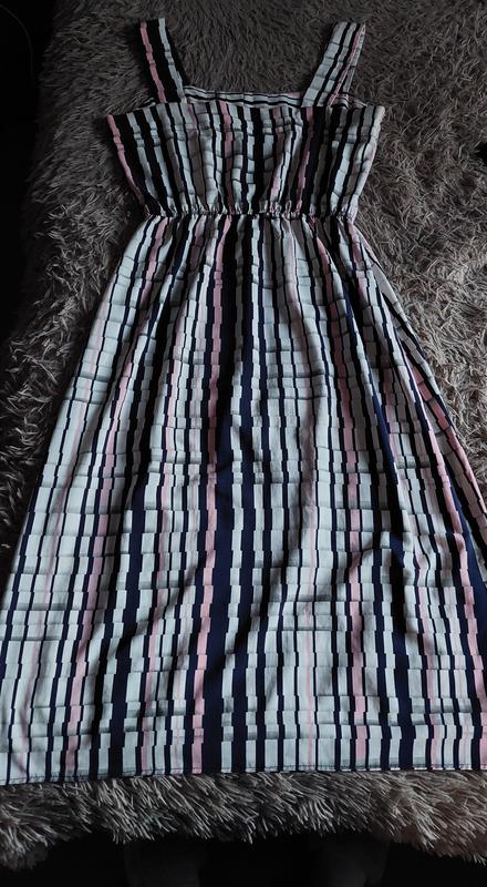 Легка різнокольорова сукня нижче коліна. Є невелика плямка, яку зовсім не помітно.