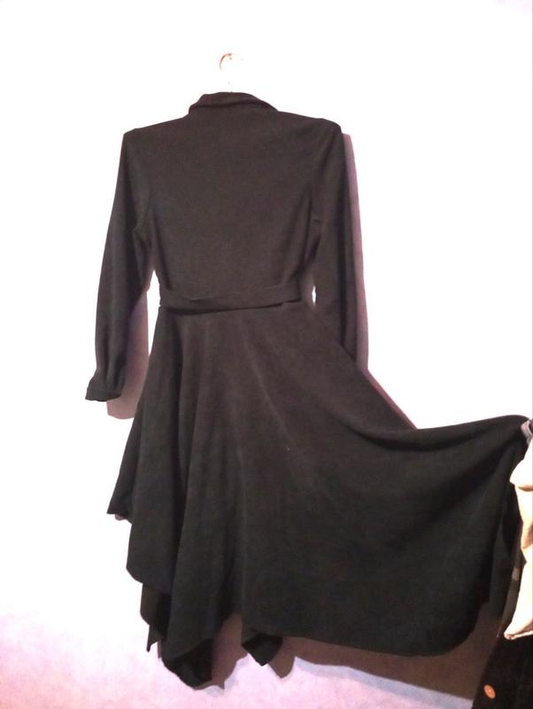 Платье необычного кроя. Платье вне моды, привлечет внимание на все времени. Украинский производитель, покупала на сайте "Гарне". Платье на пуговицах к низу, э пояс. Можно носить как кардиган, в расстегнутом виде круто смотрится. Цвет фото не передает – темный изумруд. Ткань-микровельвет. Верх – сорочка. А вот юбка очень оригинальная, спускается фалдами разной длины, много ткани. Состояние нового, одет 1 раз. Указан размер 48, хорошо сядет на М-Л. Замере по запросу.