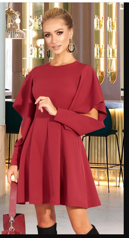 Красивое красное платье с интересными рукавами, которые застегиваются на потайную молнию. Приталенный силуэт и слегка расклешенная юбка. Размер: 48, 50.