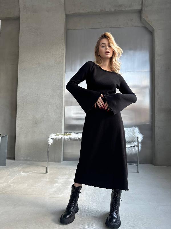 Сукня міді з ангори приталена з довгими кльош рукавами широкими з вирізом на спині плаття...