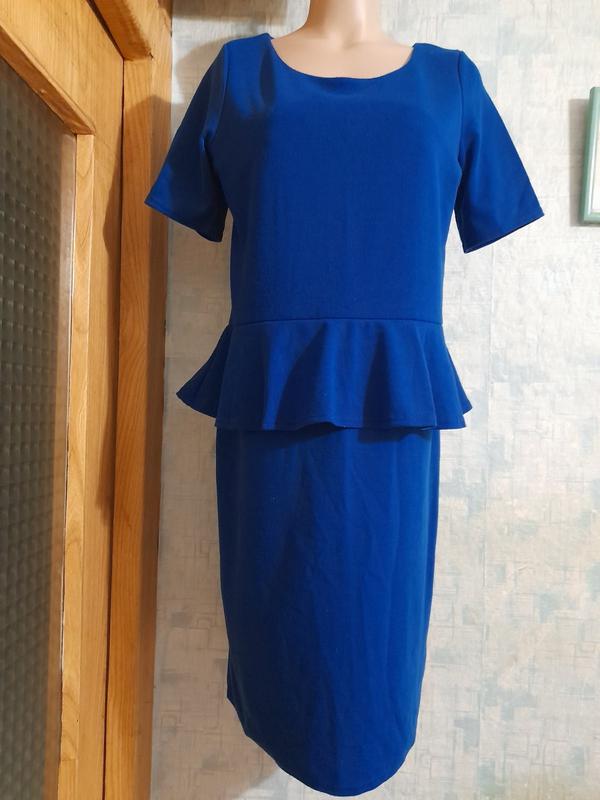 Синє плаття р. 48 англ р 14 без підкладки по талії волан ,виглядає ефектно,нарядно на спинці застібка - блискавка (потайна) довжина - 100 см пог - 49 см поб - 50 см