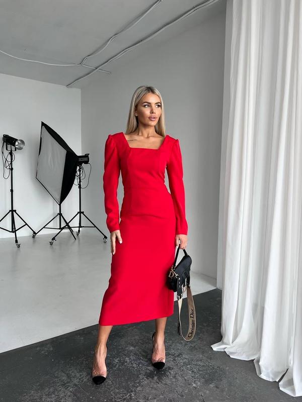 Модель 5471 Женское платье длины миди Размерный ряд S,M,L,XL Тканина костюмна Застегивается на молнию Цвета красный и черный Супер качество Цена 650 грн