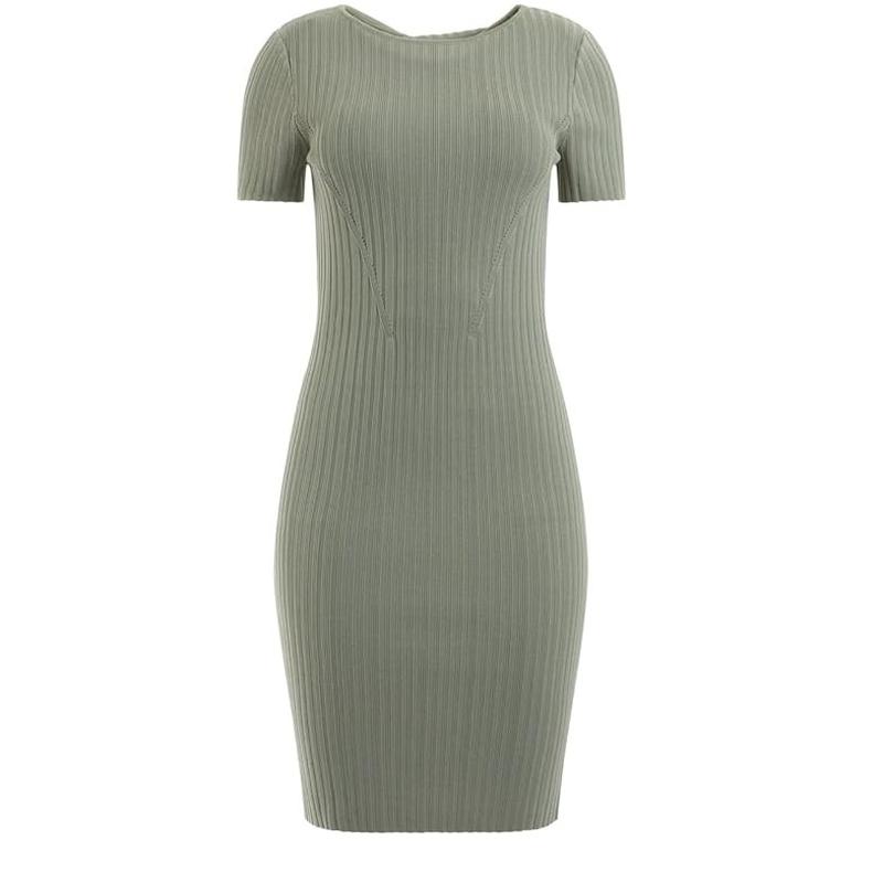 Платье-свитер GUESS Anne в рубчик с короткими рукавами. Контурная детализация и перекрученый вырез сзади 65% вискоза, 35% полиамид/нейлон