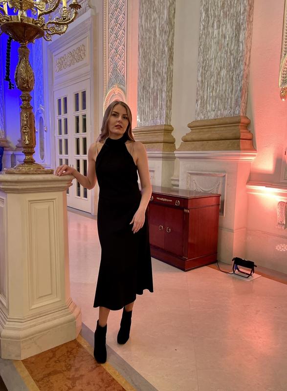 Чорна сукня міді, комір стійка MUST HAVE Розмір 38 (груди 85-95; талія 68-77; бедра 90-98), довжина від коміра 115 см. Костюмна тканина (50% віскоза, 48% поліестер, 2% еластан). Сукня в ідеальному стані, одягнена декілька разів на події (купувала за 2200)