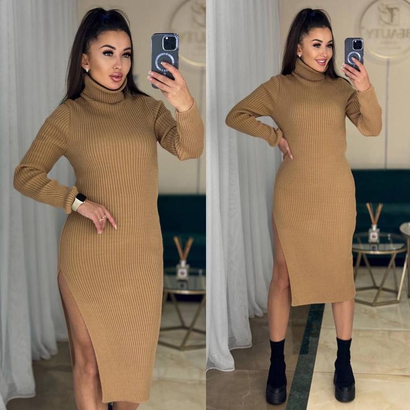 Вязаное платье- гольф в длине меди😍 Модель: 117 osip Размер: oversize 42/48 Двойная вязка Акрил+вовна Цвета: черный, пудра, серый, карамель, бутылка 🎀 Платье с высоким воротником. Изделие выполнено из мягкой, приятной к телу пряжи с содержанием шерсти и акрила. Длина миди. Крой приталенный. Длинные узкие рукава. С боку декоративный разрез 💕 Замеры: ОГ:90/115 ОС:90/115 ДОВЖИНА РУКАВА:64 см ДОВЖИНА СУКНИ: 120 СМ (ДУЖЕ ДОБРЕ ТЯГНЕТЬСЯ)