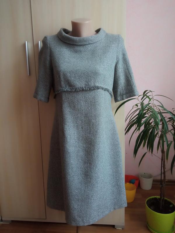 Одетая 1 раз, состояние новой вещи, на подкладке, длина 94, плечи 38, ПОГ 47, в талии свободно до 41 см. На размер s-m. Ткань с нитью люрекса.