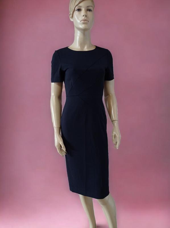 Очень классное платье M&S Collection в идеальном состоянии тёмно-синего цвета. Шикарно смотрится на человеке. Визуально стройнит и подчеркивает фигуру. Длина изделия по спинке 105 см, длина разреза сзади 20 см, ПОГ 45 см, ПОТ 36 см, ПОБ 45 см. От плеча до плеча по спинке 38 см. Ткань тянется. Модель 2699