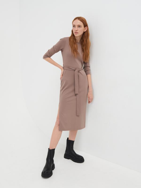 Стильное платье-миди SinSay. В наличии размер S, маломерит. В талии завязывается пояском. Снизу по бокам разрезы. S: ПОГ 41 см, ПОТ 37 см ПОС 44 см Длина 113 см Рукав 42,5 см Ширина по плечам 37 см Разрезы снизу по бокам по 36 см Состав: 73% полиэстер, 22% вискоза, 5% эластан.