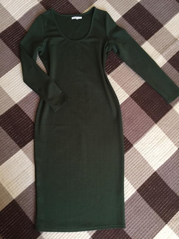 Красивое платье карандаш насыщенного темно-зеленого цвета с нейтральным/теплым подтоном Неплохо тянется, по замерам подойдет на м/л. Ниже колена, где-то до середины икры Пог 48 хорошо тянется (максимум 60) Пот 40,5 тянется Поб 47,5-48 тянется Длина 116 Рукав 62 Состояние в идеале, без нюансов. Как новая