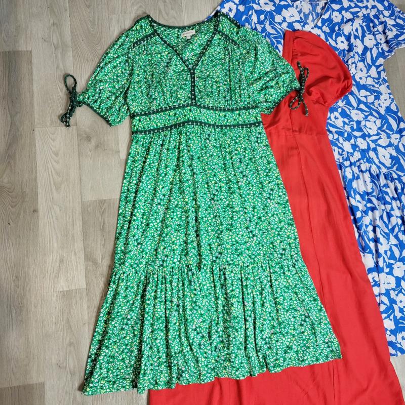 Платье из вискозы Указан размер: L, красиво тянется ПОГ: 53 (тянется до полуобхвата 65 см) ПОТ: 45 см (потянется до полуобхвата 59 см) ПОБ: 66 см Длина: 122 см Состояние: идеальный