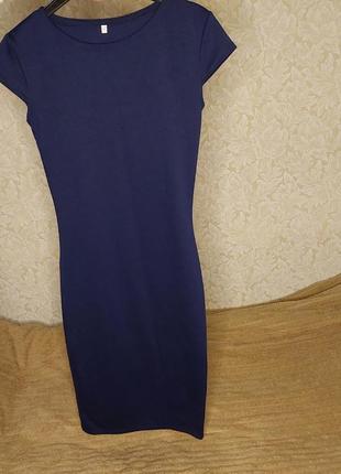 Платье синего цвета с коротким рукояткой, длина миди Размер 44 (S-M) Длина - 103 см ОТ (1/2) 34 см ОБ (1/2) 43 - 44 см Плечи - 40 см Длинная рукава 7 см