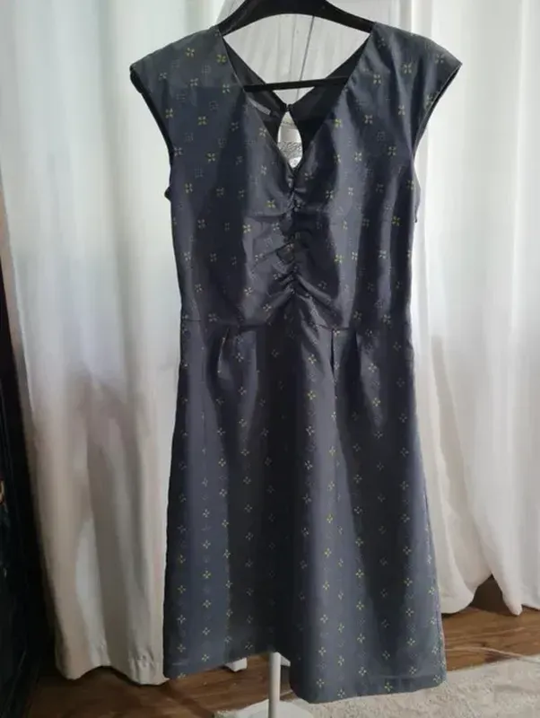 Платье в новом состоянии. Отсутствие бумажной бирки. Ткань натуральная, размер на бирке 10. На подкладке. Застегивается на потайную молнию сбоку. Замеры: ОГ - 90 см. Обхват талии - 70 см. Обхват бедер - 104 см. От плеча до талии - 42 см. От талии до линии низа - 60 см. Длина платья от плеча - 102 см. Ткань с легким переливающимся блеском.