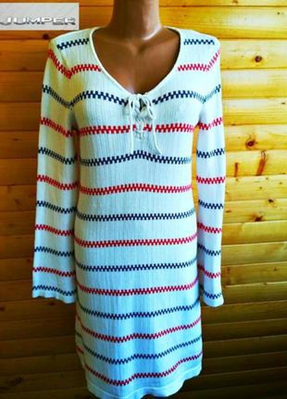 Лаконичное трикотажное платье в яркую полоску бренда Jumpe. Комфортное платье средней длины, приталенное, с круглым вырезом и длинными рукавами. По линии горловины украшена шнуровкой. Выполнена из мягкого, плотного трикотажа, приятного к телу. Изделие декорировано яркой красно-синей полоской. Такое платье займет достойное место в повседневном гардеробе. Она отлично подойдет для прогулок по городу, похода в кино или кафе, встреч с друзьями. В этом стильном и удобном платье вам будет комфортно. Размер М. -длина 91 -плечи 40 -пог 46 -пот 39 -поб 44 -рукав 64 Состав: 100% бавовна = Чтобы не пропускать обновки, а они у меня топовые, подпишись и будешь знать, что надеть завтра. 💕 =📌 Оплата:100% на карту Приват. =📌 Отправка:Новая почта, Укрпочтта (надсылка в день оплаты или на другой день) =Обмина и возврат нет! Поэтому, пожалуйста, уточняйте все заранее, а также сверьте свои настройки (одежду, которую Вы носите) с измерениями, которые указаны в описании товара. = смотрите другие объявления! Многие качественные брендовые принадлежности по низким ценам. Подписывайтесь! Обновление товара почти каждый день. Рад каждому покупателю. Вникнут вопрос – с радостью ответь! Приятных покупок!