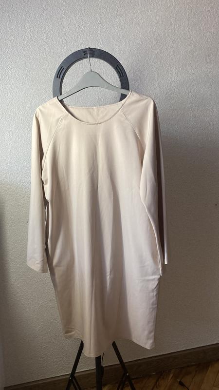 Бежевое платье Нове. С карманами Широкие рукава. Размер M-L