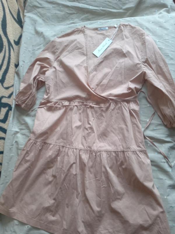 платье свободного кроя, завязки по талии,по комди крой на запах.длина 95см,пояс45см,рукав 40см.