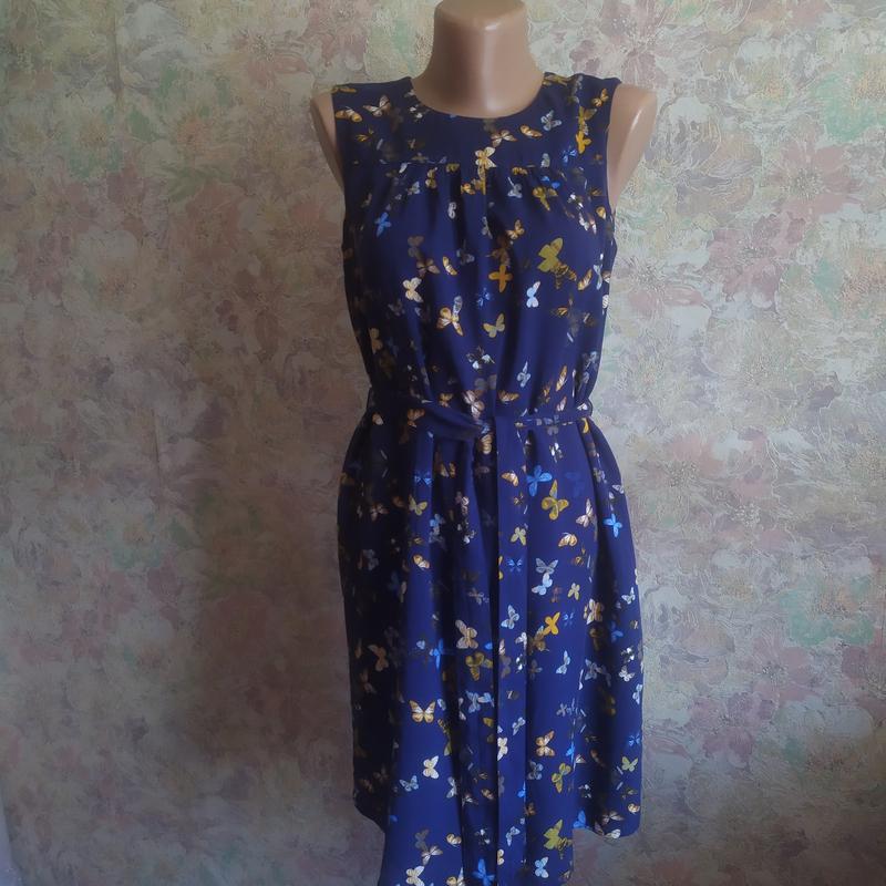 Лёгкое платье на лёгкой тонкой подкладке с пояском в отличном состоянии. Длина -88см, ширина под руками 48см, пот-56см, поб-56см ( прямого кроя). Ткань не тянется. Оплата за пересылку при получении Пересылка после оплаты на карту.
