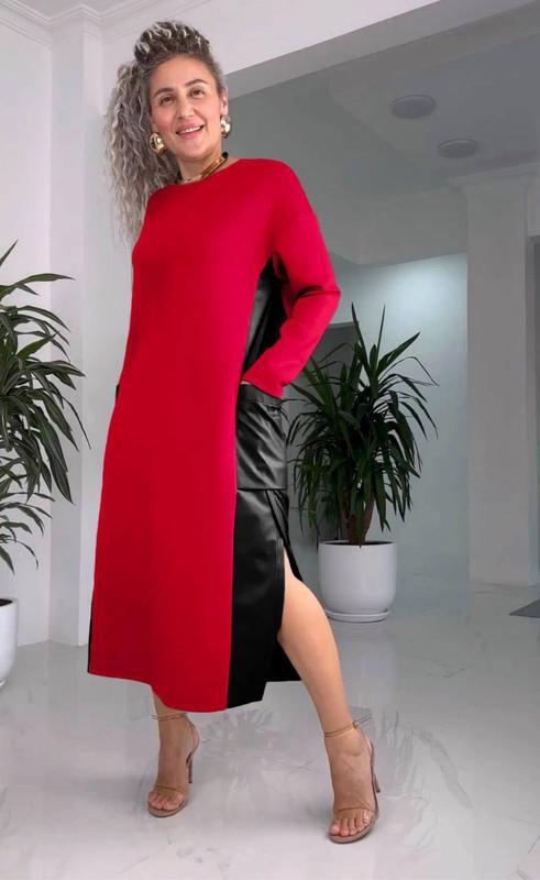 Сукня Модель 0310 Ткань: итальянский трикотаж + эко кожа Размеры: 48-50, 52-54, 56-58 Цвет: черный, красный, белый Цена 1250грн