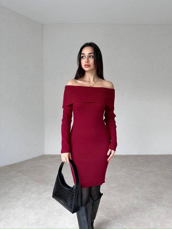 Модель 687 Жіноча сукня Розмірний ряд S,M,L,XL Тканина рубчік Супер якість З трендовими у цьому сезоні спущеними плечима Кольори бардо та чорний 16.01.24