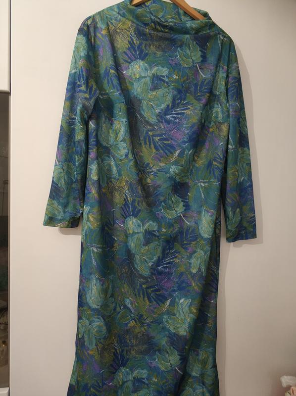 Платье женское, синтетический трикотаж, прямого силуэта с разрезами по бокам. На обьем бюста 104 см и обьем бедер 110 см, длина изделия 120 см. Единственный экземпляр. Ткань тонкая , не мнется .