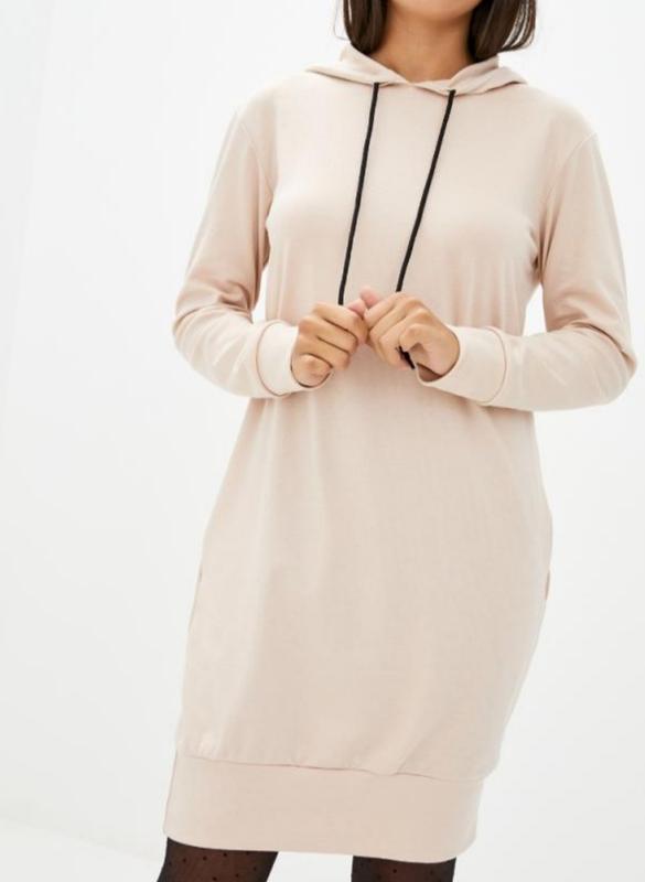 Женское платье-худи миди с капюшоном размер S. цвет- Бежевый