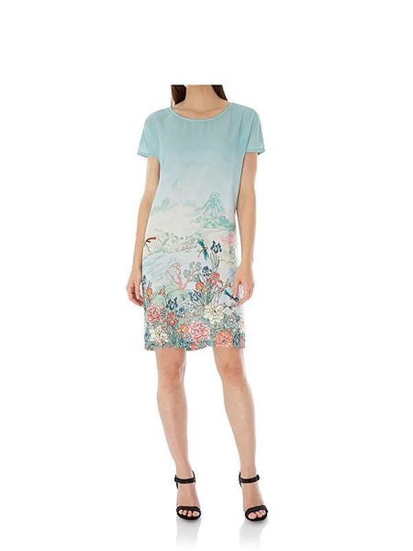 Ширина под мышками-58см., талия-55см., бедра-58см., длина от плечевого шва и до низа-95см.