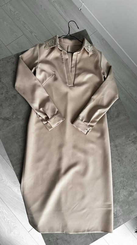 Размер S-M Длина 111 см Рукава 60 см Объем груди 92-112 см Талии 94-102 см Стегон 102-114 см Сзади есть вырез