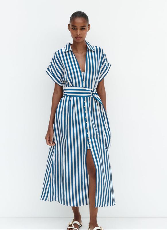 Платье из смесовой льняной ткани. Воротник с лацканами, V-образный вырез и короткие рукава с манжетами. Деталь ремня из той же ткани с пряжкой. Застежка спереди на пуговицы. ЭКСТЕРЬЕР 52% лен 48% хлопок Содержит как минимум: ВНЕШНЫЙ 50% льна сертифицированного европейского выращивания. Заходите на нашу страницу💕 Подписывайтесь 📝 Рады вас видеть всегда 🤗