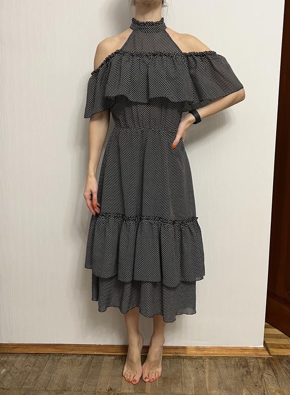 Неймовірна сукня, легка та дуже приємна . Чорна в білий горох