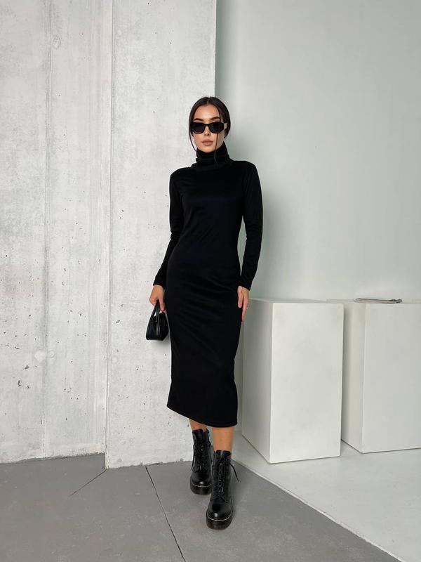 Трикотажное платье-платье с горлом длинными рукавами миди