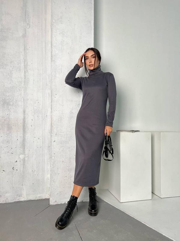 Трикотажное облегающее платье с горлом длинными рукавами миди