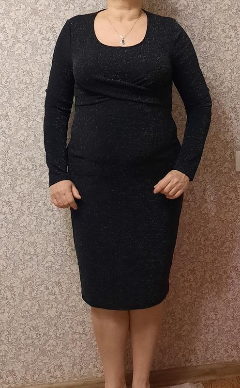 Нарядное мерцающее платье от датского бренда MAMALICIOUS (Mamalicious – датский бренд женской одежды для беременных и кормящих мам, принадлежащий компании Bestseller, которая владеет всемирно известными брендами Jack&Jones, Vero Moda, Only и др. Широкий ассортимент моделей подходит для походов на работу, в спорт зал, для встреч с друзьями и домашнего отдыха.) Чисто черного цвета с золотистым люрексом В идеальном состоянии, практически новое Приятный трикотаж, хорошо тянется Размер по бирке – L, реально 48/50, ориентируйтесь по замерам (у модели р. 52 с животиком) Ширина по груди – 46 см, тянется до 60 см Ширина по талии – 47 см, тянется до 60 см Ширина по бедрам – 50 см, тянется до 65 см Длина по спинке – 112 см, длина рукава - 61 см