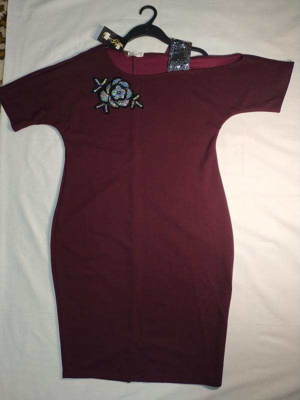 Новое нарядное платье. С биркой. Украшена пайетками. С коротким рукавом. Одно плечо открыто. Ткань -вискоза. Производитель : Украина. Замеры: ПОГ - 48 см ПОТ - 50 см ПОС - 57 см Длина -104 см