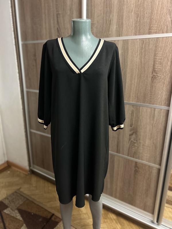Красивое платье сшито трапецией из плотной ткани. Размер L. Длина 94см, длина рукава 43см, ширина плеча к плечу 40см, ПОГ 51см, ПОТ 53см, ПОБ 55см