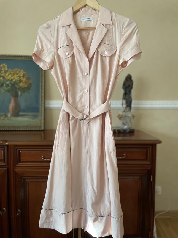 Платье нежно-розового цвета в стиле 60-х.С карманами и ремнем. Состав:52% шелк и 48% хлопок. Размер-S. Замеры: Полуокружность грудной клетки-44 см.,полукол талии-37 см.,ширина плеч-37 см., длина изделия-99 см. По всем вопросам звоните.