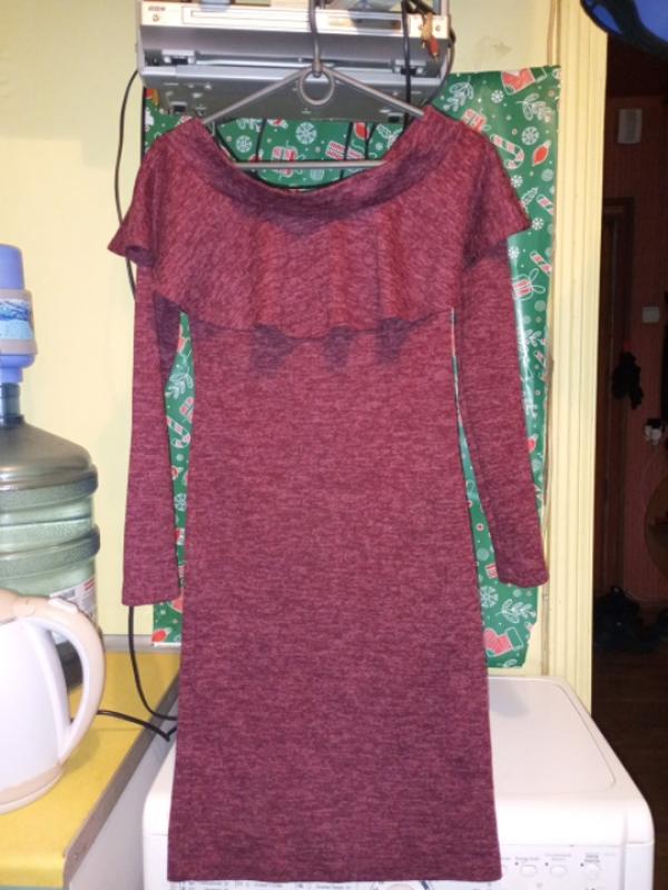 Платье бордо.Размер с.Длина 86.По талии 32,бедра 38,тянется,рукав 57.Цвет намного лучше чем на фото